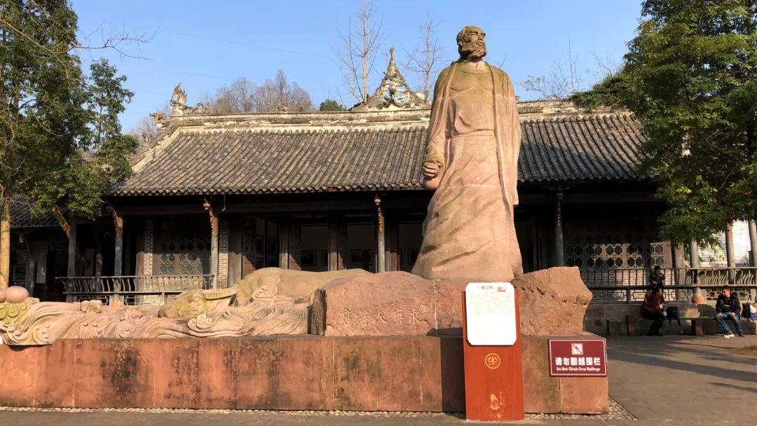 街子古镇“一瓢诗人”唐求塑像(蓬州闲士 供图)