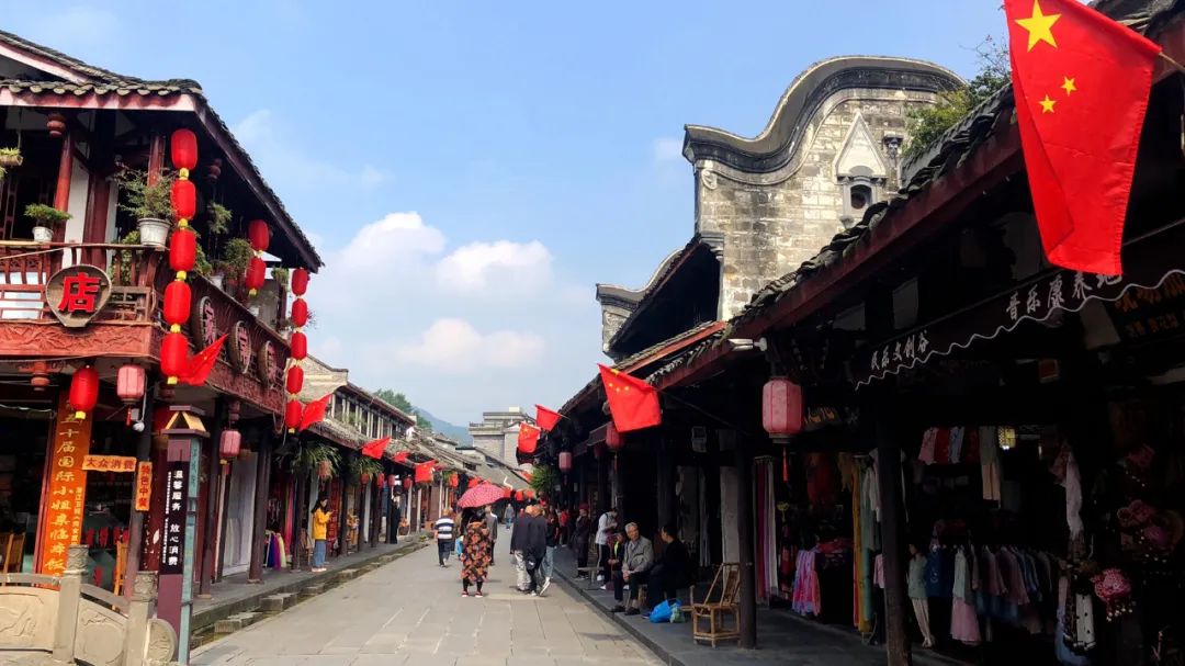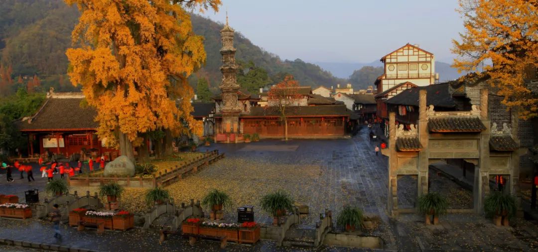 街子古镇银杏广场(崇州市地方志办公室 供图)