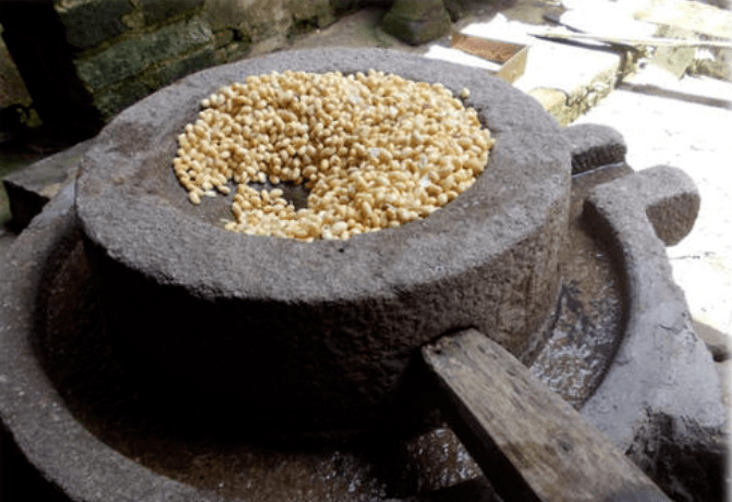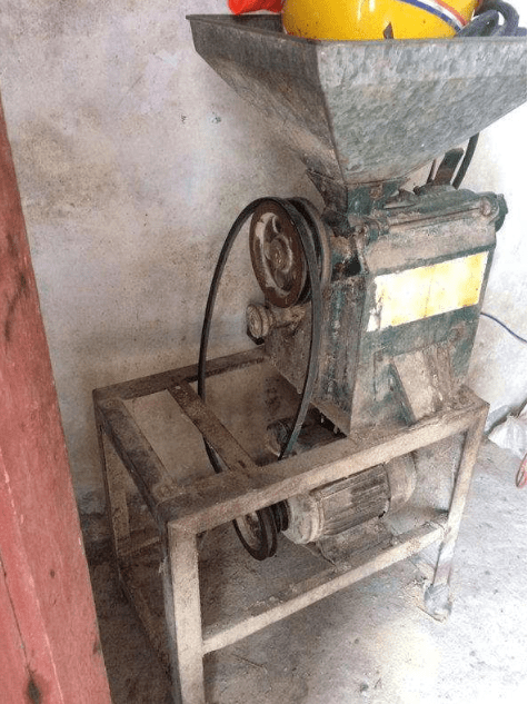 很快师傅就把这些机械配件组装好了,占据了近半间屋子。外面走廊上安放了打米机,能两用。可以剥米,也可以把小麦磨成粉。就是启动的时候有些笨重,Z字型的摇柄在逐渐加速中,机器发出震耳的轰鸣并腾起一股刺鼻的柴油青烟,开始剧烈快速转动。人们将准备好的麦粒倒入机器进口的漏斗容器里,一条硕大的布袋紧系在出口处,很快就膨胀起来,像极了怀孕女人的腰身,敦实而丰满且凸显。下端用大木桶接纳洁白如雪的面粉,在机器的轰鸣声中满院站满了围观的人。