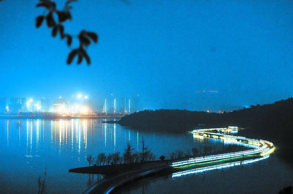 2019年1月11日,夜幕降临,天府绿道犹如湖中的一条巨龙(图片来源:成都日报)