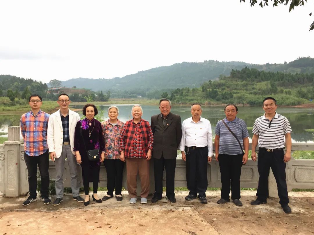 从陕西、湖南还乡祭祖的家族亲人在金银寨下清水湖畔合影留念(杨明强 摄)