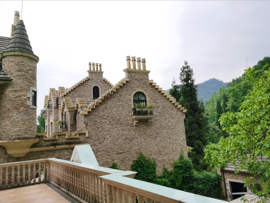 灾后新建在幽静山村的欧式建筑