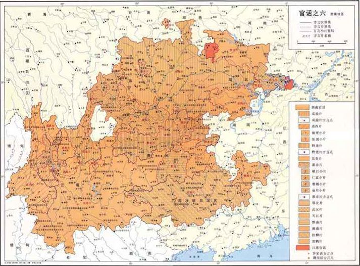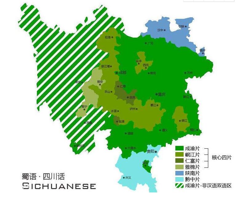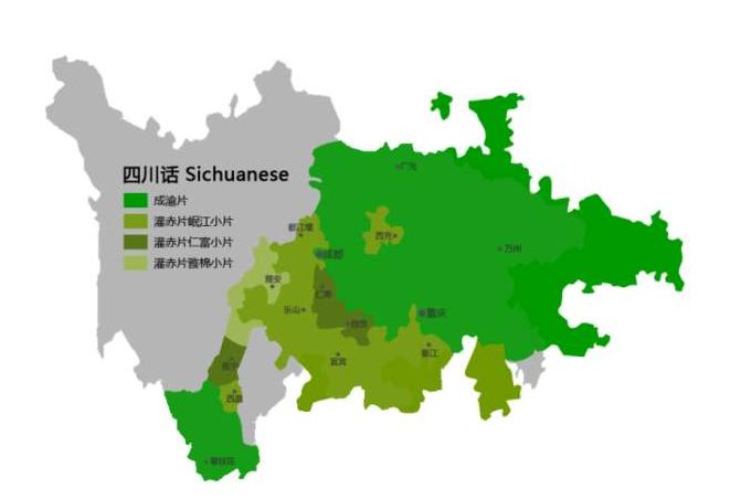1987年由黄雪贞绘制并撰文的《中国语言地图集》把整个西南官话分为12片,四川的西南官话分属其中的4个片区,主要是成渝片和灌赤片,另有个别地方属贵昆片和黔北片。