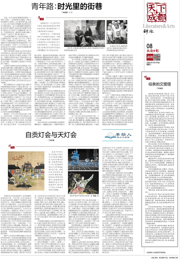 后来我们又搬家了,搬到了更远的华西坝,成都的城市建设也在发生着翻天覆地的变化。若干年后我又去到这里,青年路34号的小院已不复存在,昔日寂静的小巷湮没在如今车水马龙的繁华商业街里。听说每到清晨,这里的九龙广场、万紫广场、金开广场、明都广场挤满全省各地来批发商品的商贩,他们依然在寻找商机,捕捉着时尚和价格差的最佳结合点。