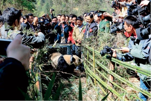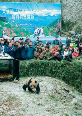 2014年10月14日,经过两年野化培训,“雪 雪”在四川栗子坪国家级自然保护区大熊猫适应 场放归野外。“雪雪”的放归为人工繁育大熊猫野 化放归积累了宝贵的科研及监测经验。