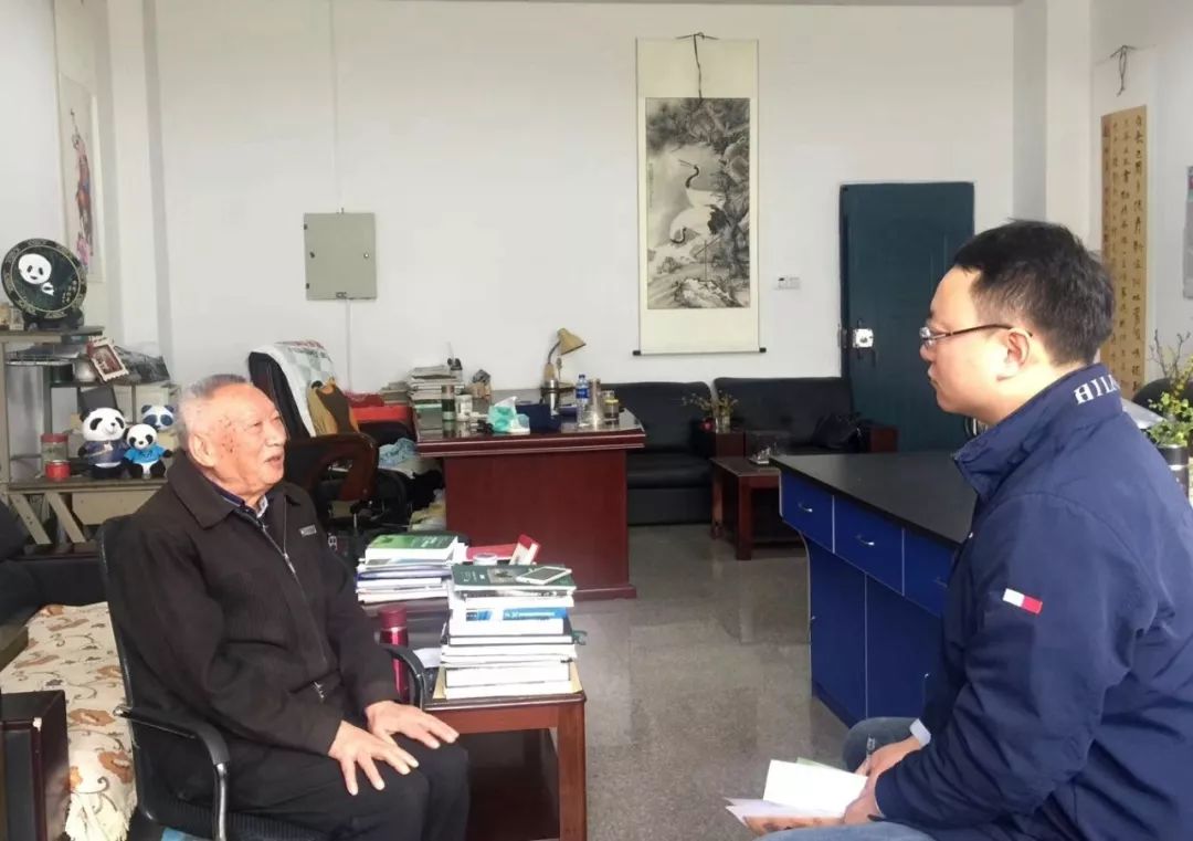 2019年3月4日,新华社四川分社记者杨迪在西华师范大学采访91高龄的大熊猫专家胡锦矗教授(刘艳平 摄)