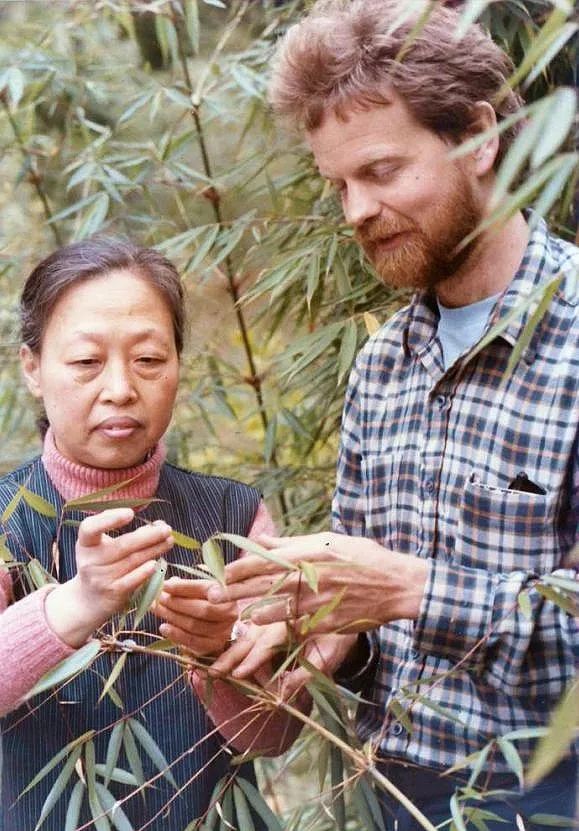 秦自生教授与外国专家艾伦·泰勒观测竹子生长情况(图片来源:西华师范大学)