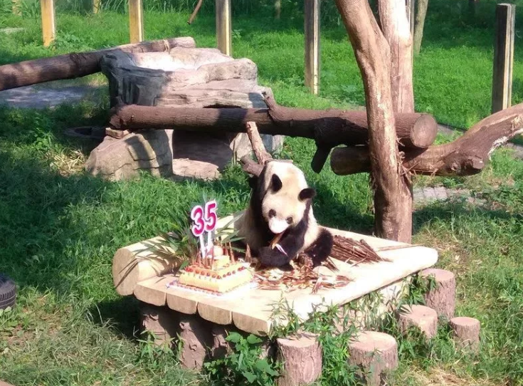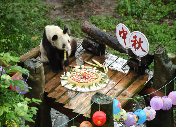 2018年9月4日,重庆动物园为36岁的大熊猫“新星”过中秋节