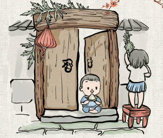 1.端午悬菖蒲、艾叶于门。南朝梁宗懔《荆楚岁时记》记载:“五月五日,四民并踏百草,又有斗百草之戏。采艾以为人,悬门户上,以禳毒气。”宋孟元老《东京梦华录》卷八《端午》记载:“又钉艾人于门上,士庶递相宴赏。”宋李昉《太平御览》卷三一引隋杜台卿《玉烛宝典》记载:“五月五日采艾,悬于户上,以禳毒气。”