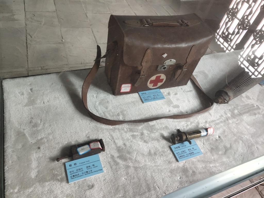 走进红四方面军总医院旧址,中院过厅里陈列着当年红军使用过的物品和用具,一件件简陋的医疗旧物,无不诉说着战斗的艰难。