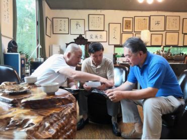 2019年6月,樊建川、王少雄和笔者在建川办公室分享历史影像