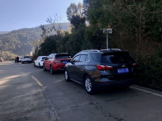 前来新山傈僳族乡观光的外地自驾旅游车辆汇成长龙(袁征 摄)