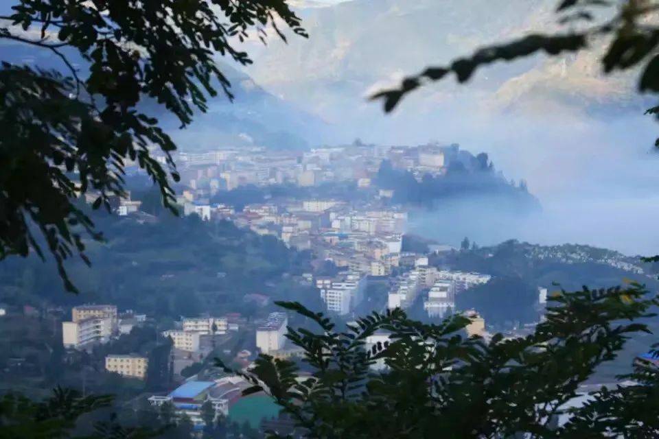 晨雾中美丽的美姑县城(李焰川 摄,图源:四川方志图库)