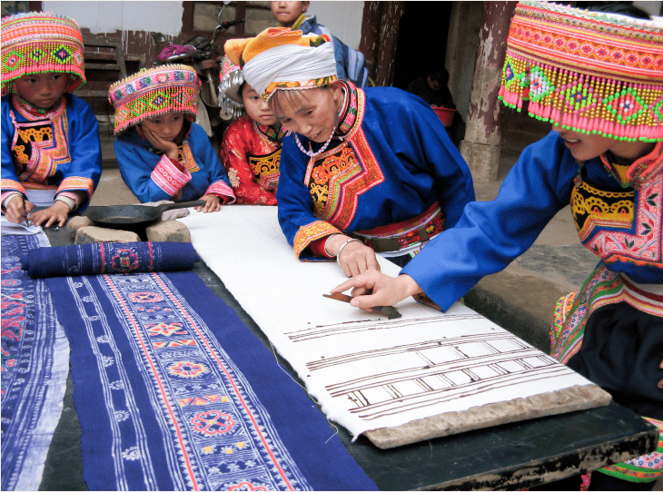 从工艺角度看,它是一种纯手工制作,是山地文化的一种传承模式。纯手工制作决定蜡染品质。就蜡染的工艺特点而言,它不是一种落后的技术,而是娴熟手艺的展现,为现代工业无法替代。蜡染离开手工制作,便显得黯淡无光。