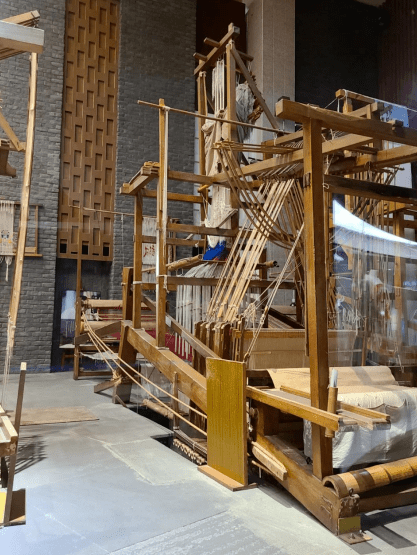 最令人瞩目的,还要属大型蜀锦织造工场以及那一台清代小花楼木织机,直到现在还能进行蜀锦的生产操作,着实让人惊叹。