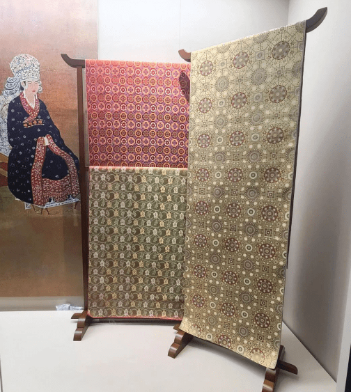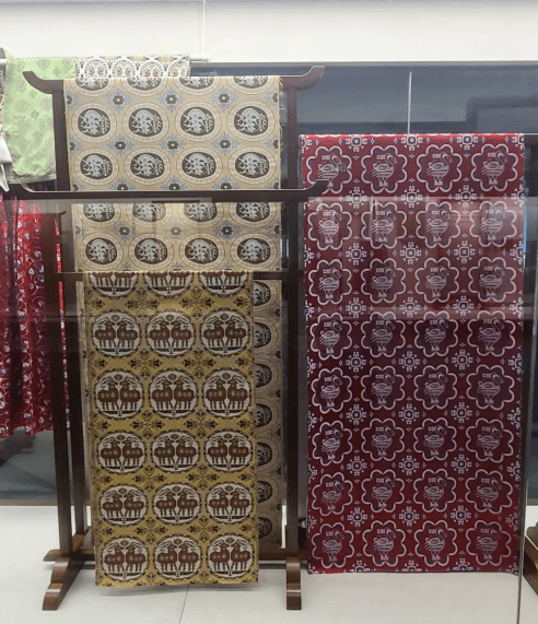 成都蜀锦织绣博物馆(蜀江锦院)里除了古代的仿制品,还有近代民国的蜀锦蜀绣精品。