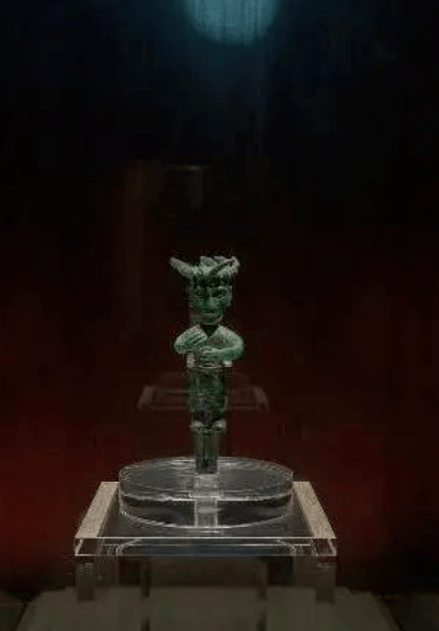 陈列馆中的第三展厅——天地不绝,设置于一层东厅,面积约1000平方米。通过神秘的“祭祀走廊”进入该展厅,你就会看到一个奇怪的青铜立人。