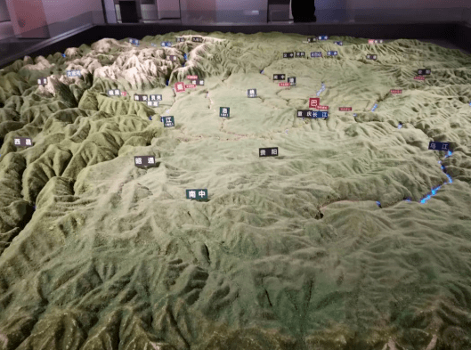 中央沙盘展示了古蜀文明的分布区域及其与周边文化的紧密联系,宝墩文化——三星堆文化——金沙·十二桥文化——晚期蜀文化的文明历程,通过图片展板和出土文物表现得淋漓尽致,金沙文化辉煌灿烂的历史背景豁然开朗,文化发展的真实脉络日渐清晰。空间布局以中央沙盘为核心,围合出半封闭的主题空间。明朗的基调,简练的线条,传递出古蜀历史的悠久与厚重。