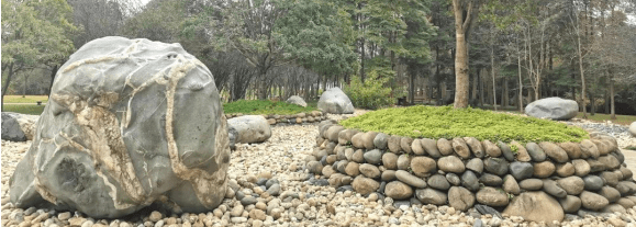 玉石之路占地1000平方米左右,由大型玉石及若干小鹅卵石组成,是儿童喜爱的乐园。