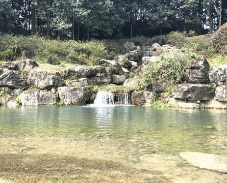 为增加西山的灵动趣味,博物馆特意从西山饮水入渠。掩映在木林汇总的山水顺着山体潺潺滑落,山水顺流进入5条蜿蜒沟渠。渠中美石相映,水草丰茂,沟渠恰好环绕整个西山水景广场,展现了一幅生态清新的山水泼墨。