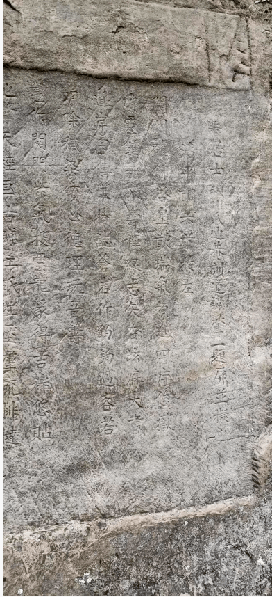 于是电告族弟,要勘正上述疑点,唯实地核实屏刻原文正误,务请再次亲临拍照录相。辗转往来,终获第一手资料,经细心比照校对,诸如以上问题迎刃而解。然而,又发现了一个最大的问题,那就是石屏开首第一个字的位置应缺少一个字,从照片原迹看已脱落得模糊不清,无法辩认。到底是个什么字?现我只有用问号质疑,留给后来者研究。但为便于当前理解,姑且借用一个(庐)字来填补。至于为什么要借用它来填补,理由是什么?先看看开屏第一句说的什么。开屏句是这样的:“?安居士颍川氏迪庵训道讳肇一题屏并拟”。据本人推测,这一句中“讳肇一”是作者本人,姓“讳”名“肇一”,“?安居士”应是他的别号,古人在名和字之外取号是常有的事;“颍川氏”是籍贯,“迪庵训道”应是身份。在“?”处用“庐”替代进去,这作者自号就叫“庐安居士”。至于加“庐”进去的理由,我认为有以下三点: