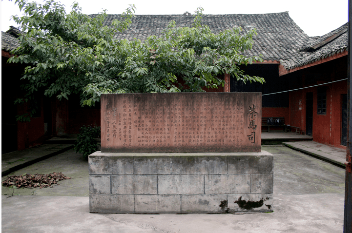 今天的名山区新店镇,有一座宋代修建的茶马司遗址。这也是全国唯一留下的茶马司遗址。这座修建于宋熙宁七年(1074)的四合院,是中国历史上第一个专管茶马贸易的行政机构,其职责在于“掌榷茶之利,以佐邦用;凡市马于四夷,率以茶易之”。