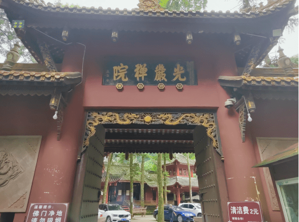 清脆鸟语,蝉歌和鸣,这是凤栖山森林广野,走木栈道,在无路处转弯豁然开朗,还是那条游道,快走几步,来到古寺大门,门匾曰“光严禅院”。古树森森、千年古寺,西川第一天是也。寺院肃穆、千年金丝楠木、荔枝树、红豆树参天挺立,树上跳动的松鼠,好似和你我互动着“阿弥陀佛”的礼遇,鸟语、蝉鸣、禅音,好一个空灵放飞之地。