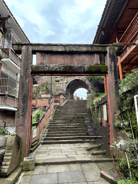 南城门在飞仙关“和夷厎绩”断岩下,因临江而建,也叫“水闸门”。进南城门,需走搭在悬崖上的石偏桥,绕开断岩才能到。南城门“岓桥危欲坠,峭壁险无双”,乃是一当关,万夫莫开之地。1938年修川康公路时,南城门及石偏桥炸毁。