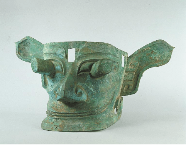 三星堆出土的纵目人像青铜面具(三星堆博物馆 供图,图片来源:四川日报)