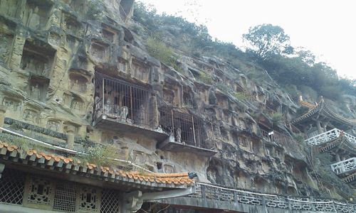 在经济繁荣,佛教大发展的社会大背景下,各个阶层都加入了开窟造像的行列,推动了千佛崖摩崖造像的繁荣,在崖壁上见缝插针,开窟造像,整个崖壁开凿殆尽,从而形成了密如蜂巢,规模宏大的石窟群。