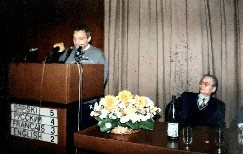 王火作为中国作家代表团团长,在布拉格参加活动(田闻一 供图)