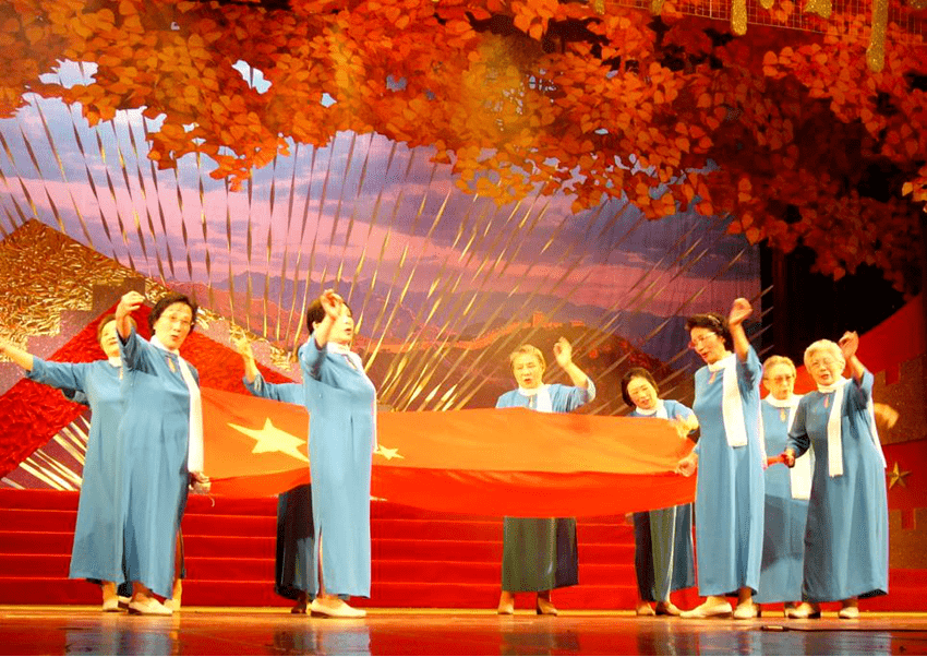 母亲的心永远同党、国家和人民在一起跳动,积极参加庆祝国庆四十五、五十、七十周年,庆祝香港、澳门回归,庆祝建党七十、八十、九十、一百周年,庆祝抗战胜利五十、六十、七十周年……等各种庆祝及其文艺演出活动,为取得的胜利自豪,为祖国和时代讴歌,虽容颜渐改,但心潮依然激情澎湃,革命人永远年轻。