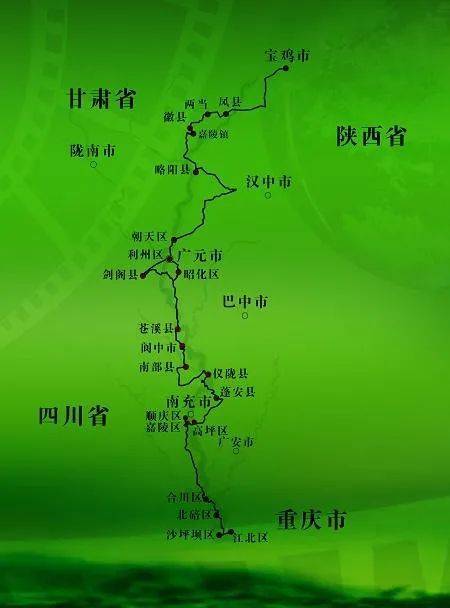 嘉陵江源自“世界屋脊”青藏高原东沿昆仑山东南麓至秦巴山区一带,跨越了我国地理的二、三级台阶,流经陕甘川渝四省市,是长江最大的一条支流。和众多河流不同,其源有五:一源在陕西凤县,出秦岭主峰太白山西北,称古道河,邻关中平原;一源在甘肃天水,出祁连山东南,称西汉水,接麦积山南麓;一源在陇蜀交界处,出郎木寺红岩,称白龙江,邻“黄河第一湾”;一源在四川松潘,出岷山主峰雪宝鼎,称涪江,即“人间瑶池”黄龙;一源在川陕交界的大巴山中,称通江,汇州河、巴河而成渠江,“五源”自应“五行”。其主干呈北南向,是我国唯一一条垂直穿越南北地理分界线(秦岭--淮河)的大江大河(另一条是人工挖掘的大运河),有“山分南北,水连华夏”之称,既有南方的清秀,又有北方的雄浑,雄奇幽秀,无江能及。