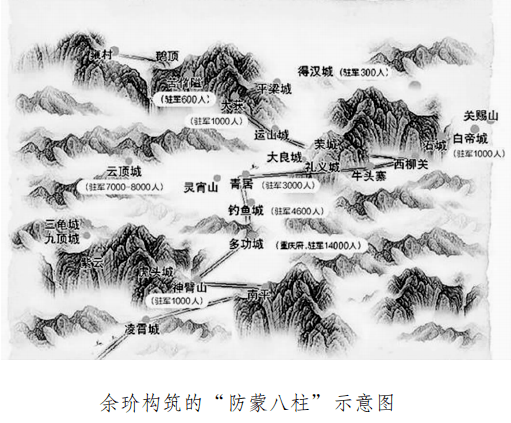 尤为神奇的是,秦岭、摩天岭——米仓山——大巴山、岷山——大剑山、华蓥山——缙云山、铜锣山,嘉陵江流域的一道道山脉,以东西向的秦岭和南北向的巫山为两边,呈倒扇形分布,千山万壑,铁壁铜墙,自然构成一道道层层设防的牢固防线。山脉之间是狭长带小块平原或平坝,平时人口稠密,战时可以屯兵,也可以诱敌深入,依靠两侧山脉形成一个又一个包围圈,居高临下,关门打狗,围而歼之,加之嘉陵江三大主干川流其间,是运送粮草和驰援的黄金水道。山水互为依托,构成冷兵器时代世界上最严密的防御体系,固若金汤,与岷江流域一道,造就了历史上中华民族最重要的战略大后方,是中华民族没有断代、中华文明没有断线的重要保障。无论你多么来势汹汹,如何嚣张,这道关都不可逾越。南宋后期,四川安抚制置使余玠采纳冉氏兄弟之计,以嘉陵江流域为重点,建钓鱼城、得汉城、苦竹城、大获城、运山城、青居城等,迁合州、洋州、阆州、蓬州等州治于其上,依山筑城,恃险拒守,连点成线,互为倚角,如臂使指,气势联络。“议弃平土,筑垒城池,号为八柱,不战而自守矣”,史称“抗蒙八柱”,王坚、张珏等爱国将领率当地居民众志成城,誓死坚守,挡住蒙古铁骑半个世纪之久。号称“上帝之鞭”的蒙古大汗蒙哥和主帅汪德臣在此“折鞭”,准备入侵埃及的旭烈兀,侵入武汉、长沙的匆必烈、兀良合台从欧洲、从两湖全面撤退,改写了世界历史。明朝末年,纵横全川的一代枭雄“大西王”张献忠,在“忠义之邦”西充凤凰山下被民团箭击毙命。清康熙时,引清军入关、一时风光无限的“平西王”吴三桂再次叛主,在嘉陵江流域拼尽主力,大势所去,折戟沉沙。