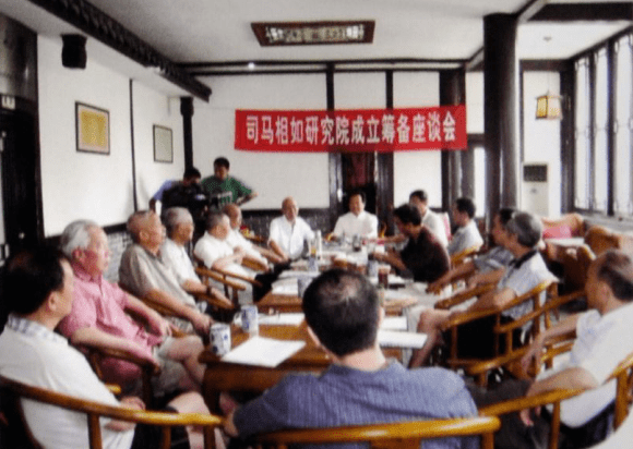 2011年5月,司马相如研究会理事长赵正铭(中)主持召开司马相如研究院成立筹备座谈会