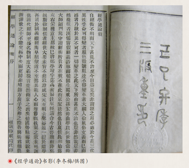 龚道耕先生不仅仅是近代四川高校的知名教授,亦是近代中国著名的学术大家、蜀学的重镇人物、一代经学大师。先生于学为大儒,于行为大师,两肩道义,经师人师,为完人矣。故姜亮夫言“先生始终以儒师为职志,牖启民愚,成就多材,贞壮为世所罕见,毁家以救上庠之厄,而非专固自私,则亦儒者传习所事,醇雅为当时学人之所不及。则学识人品,俯仰不愧其所业,门子弟与时人皆奉为大儒、纯儒”①。其学问渊博,勤于著述,学贯四部,平生所著论著自《仓》《雅》《说文》、音韵、训诂,以及经注、经疏,辑遗校勘,无不涉猎。其学又不拘家法,汉宋兼主,今古并治,左右采获,卓然成一大学宗。其著《经学通论》一书,系龚道耕先生任教成都高等师范学校时,在所编经学讲义的基础上撰写而成的一部经学概论著作。是书卷首有华阳林思进丙寅(民国十五年,1926)二月《叙》,述及撰著大略和刊刻缘由,云:“方庚子、癸卯之际,吾与龚君相农年皆盛壮,亦尝稍稍窥览其域。退而审谛,知不必然,陵夷至今,猥怪之说,视昔尤众,凡当日号称闻人钜子者,莫不俯首却行,仰号令为进退。呜呼!学之不讲,乃至是乎!今者群咻渐止,读经之声稍传庠序,而相农以经教授吾蜀高等师范者十年矣。其搘柱飙狂涛骇中者最久,于是有《经学通论》之作。诸弟子著录者,亦并服膺师说,惟恐或失,请于君,得印行之。”②成都高等师范学校创建于民国十五年(1916),先生于是年起在此任教,为诸生讲授经学,历时10年之久,在其所编经学讲义的基础上,故有《经学通论》之作。