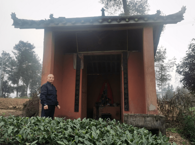 卢姓族人手指茅联路旁20米处一小房说:“那就是铁甲庙,里面供奉着铁甲将军的塑像,尽管祠堂被毁,小庙还是保存好了。”站在茅联路上,不注意很容易忽略的一间小屋矗立在茶园之中。小庙后墙处,一棵松树紧贴小庙低头生长,仿佛是当年的铁甲将军守护卢氏先祖卢杞一般,不离不弃。