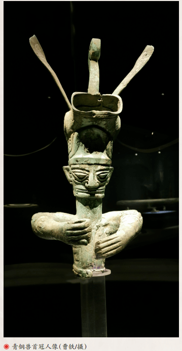 (五)关于青铜神树。这是很震撼的奇物,其来源和功用争论很大。我们分析,神树造型灵感来自花椒树,在古代花椒是神物,用于祭祀和辟邪,还有多子和多福之意,其特殊的香味让人不可捉摸,久久不忘。后来演化为月亮上的桂花树,与吴刚和嫦娥有关。神树上9只鸟,来自后羿射掉的9个太阳,太阳对古人有害,不受欢迎。《山海经·大荒南经》有记载“羲和者,帝俊之妻生十日”。《山海经·海外东经》记载“汤谷上有扶桑,十日所浴,在黑齿北。居水中,有大木,九日居下枝,一日居上枝”。居上枝的太阳就是现在的太阳。神树是征服太阳的纪念和丰碑,并无通天之意。