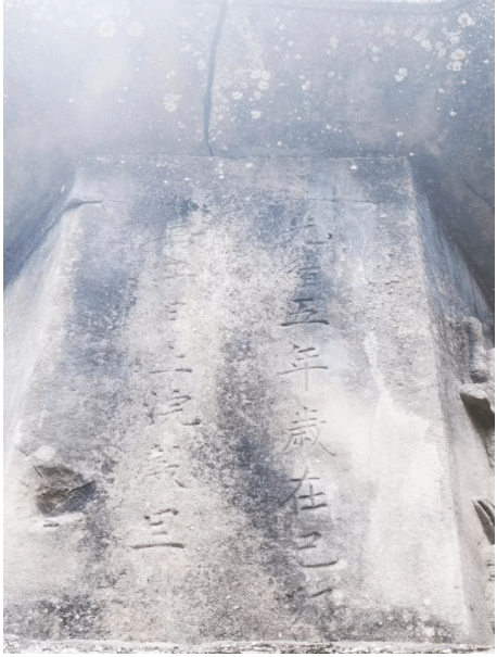 在字库塔北向正面的第三级,镂空雕刻了一个圆形方孔的钱币状石窗,与南向的仙桃状投纸口向对应,石窗用于出烟通风之用。两孔中间的石墙上阴刻左右两排题记:光绪五年,岁在己卯,嘉平月上浣谷旦。由此得出字库塔建造的时间为清光绪五年(1879)十二月上旬,地支纪年为己卯年,嘉平月为十二月,上浣即上旬,在此良辰吉日,塔成工竣,刻石纪念。