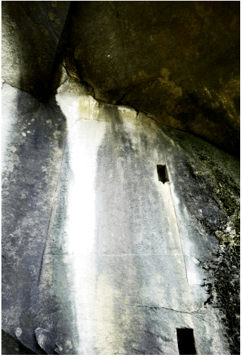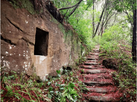 字库所在的石壁距道路0.8米,道路为石梯路,宽1.1米,顺着山势逐级开凿而成。石梯路坚固牢实,石面经长年踩踏显得锃亮光滑。此地为合兴乡北通仪陇、平昌的交通要道,往来行人众多,字库建设于此,给乡人提供了更多便利。