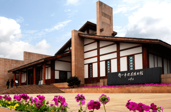 邓小平故居陈列馆位于邓小平故居与铜像之间,设计创作理念体现邓小平同志参加革命后波澜壮阔的人生经历,其中陈列馆的3个斜坡屋面,寓意邓小平同志三落三起不平凡的革命历程;中间高耸的建筑为“丰碑”,象征着邓小平辉煌的历史功绩及邓小平理论的伟大旗帜。