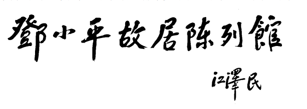 1998年2月,邓小平同志逝世一周年之际,时任中共中央总书记、国家主席、中央军委主席江泽民志为邓小平故居题写匾额“邓小平同志故居”。