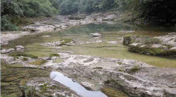 白石河河底宽度约十米左右,因那里岩石是石灰岩结构,河底多有漏洞,水流经岩缝、漏洞流走,是以河里的水常年是涓涓细流,可涉足而过。只有涨洪水时,才有大水流。河底都是石灰岩石,经流水常年冲刷,表面凹凸不平,呈现白色,因称白石河,且河底绝少砂石。河的两岸都是绝壁,陡直难行,高约百余米。白石河中游有个很大的落水洞,平时水流不大,都从那个洞里漏走。在洞的周围形成了一个约10米方圆的漏斗,洞口能吞下整棵碗口粗的大树。据说这个洞直通冒石子。