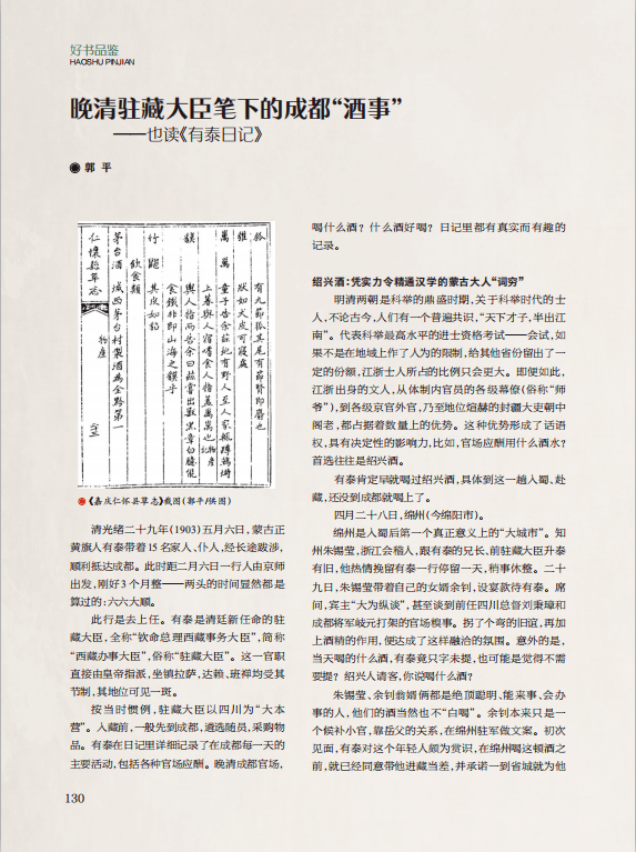 【历史文化】晚清驻藏大臣笔下的成都“酒事” ——也读《有泰日记》‖郭平