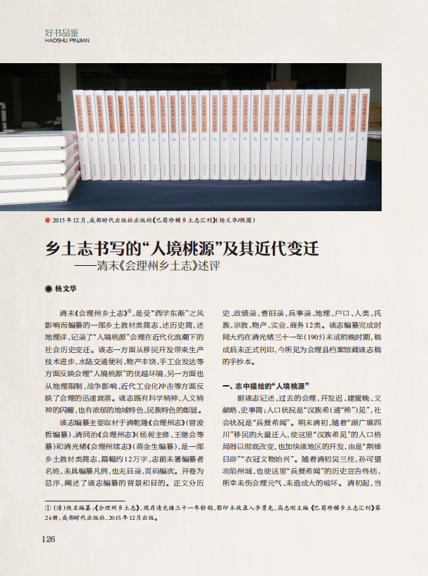 【文史英华】乡土志书写的“人境桃源”及其近代变迁——清末《会理州乡土志》述评‖杨文华