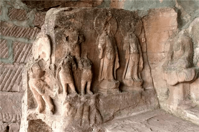 甘肃敦煌莫高窟、甘肃天水麦积山石窟、河南洛阳龙门石窟、山西大同云岗石窟是中国赫赫有名的四大石窟。这些石窟的摩崖石刻精美绝伦,承载了传统的儒释道文化,堪称室外的艺术博物馆。在中江县仓山镇倒碑垭村大旺寺(又名大湾寺),也可以见到雕琢精美的摩崖造像石刻群,它是仓山悠久的历史和灿烂文明的见证。