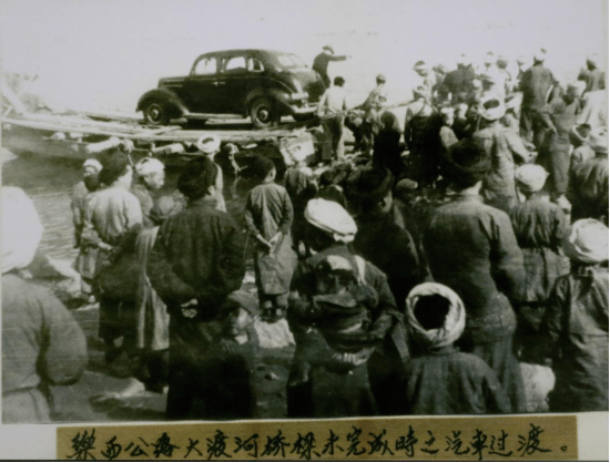 乐西公路大渡河桥梁未完成前汽车过渡场景(西昌市档案馆 藏)