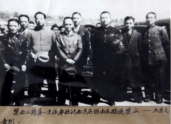 乐西公路第一次试车抵达西昌后仍由原路返乐山。图为参与试车的人员返回乐山前在西昌留影(第一排左二为孙发端,左三为赵祖康,张熹 供图)