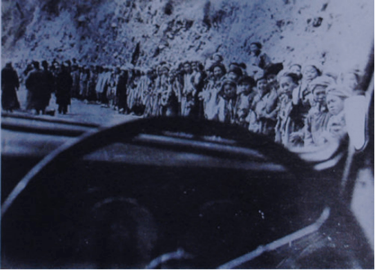 乐西公路第一次试通车时蜂拥围观的民众(西昌市档案馆 藏)
