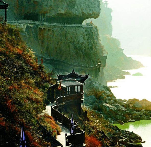 第二险是明月峡。明月峡自古是川陕咽喉要道,山势奇险,峡高谷深,“连峰去天不盈尺,枯松倒挂倚绝壁”,令工程技术人员束手无策。1935年,鉴于时间紧迫,筑路委员会组织民工在明月峡古栈道半壁绝崖上,用炸药、开山机等开凿出一道长864米、宽4.5米的凹槽,并在凹槽中设置了会车待避所,外侧设标桩为号,形成一道“老虎嘴”长廊,勉强可以通车,称为明月峡半隧道,这是四川公路建设中第一个半隧道。这段凹槽式的公路如今停驻在明月峡上方,形成了一道令人惊叹的“老虎嘴”长廊。1937年9月,川军第一纵队10万将士,通过川陕公路开赴抗日前线。